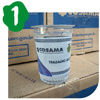 Os copos, utilizados na distribuição de água potável nas ações de cidadania do Governo do Amazonas, são