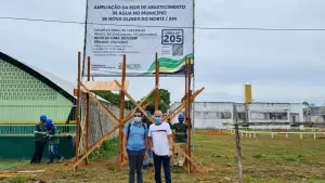 O presidente da Companhia de Saneamento do Amazonas, Armando do Valle, e a diretora administrativa da concessionária, Kellen Pereira, estiveram no município de Nova Olinda do Norte, nesta sexta-feira (25), a convite do deputado estadual João Luiz (Republicanos) para acompanhar o início das obras de expansão da rede de água que está sendo construída e direcionada por meio da Secretaria de Estado de Infraestrutura e Região Metropolitana de Manaus (Seinfra).
