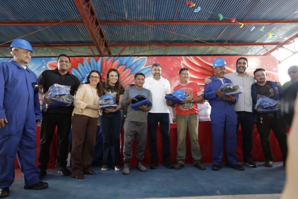 O governador Wilson Lima esteve neste sábado (09/08) em Manacapuru (a 68 quilômetros de Manaus) para acompanhar os preparativos das cirandas que participam do 27° Festival de Cirandas, Flor Matizada, Guerreiros Mura e Tradicional. O governador entregou 150 kits de Equipamentos de Proteção Individual (EPIs) para artistas e trabalhadores dos galpões, além de formalizar a doação de 50 mil copos de água envasados e temáticos para o evento. O investimento estadual recorde para o festival de 2025 é de R$ 7,6 milhões.