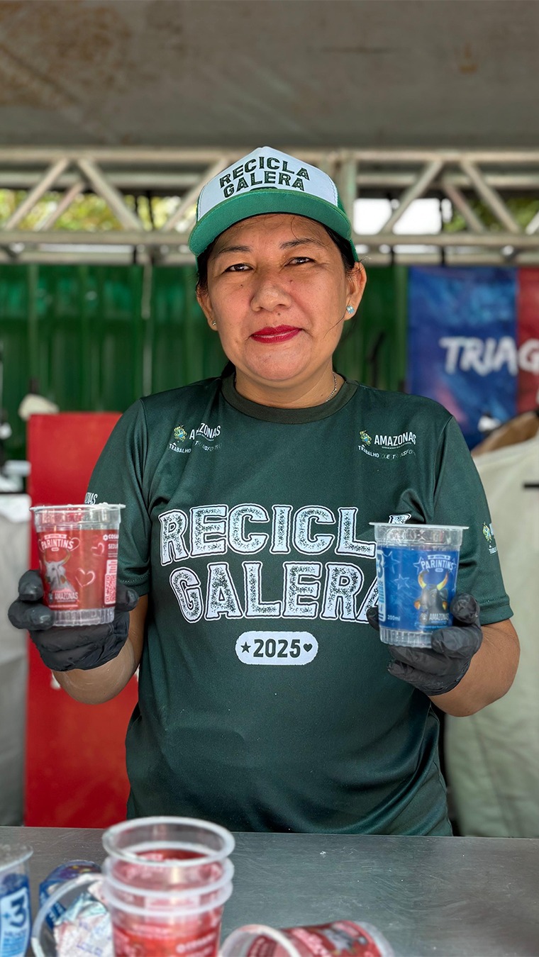 “Estamos aqui para somar e coletar esse material, por meio de mais um ano de parceria, com o governo e Cosama, para recolher as embalagens distribuídas no festival, filas e nas ruas de Parintins, e que vai ser destinado para associação, é uma renda a mais que chega a somar com o sustento de várias famílias através de um ganho melhor. E, também, reforço o pedido ao público que façam o descarte correto do seu copinho, e somem como essa importante ação em prol ao meio ambiente”, afirmou a presidente da Ascapin.